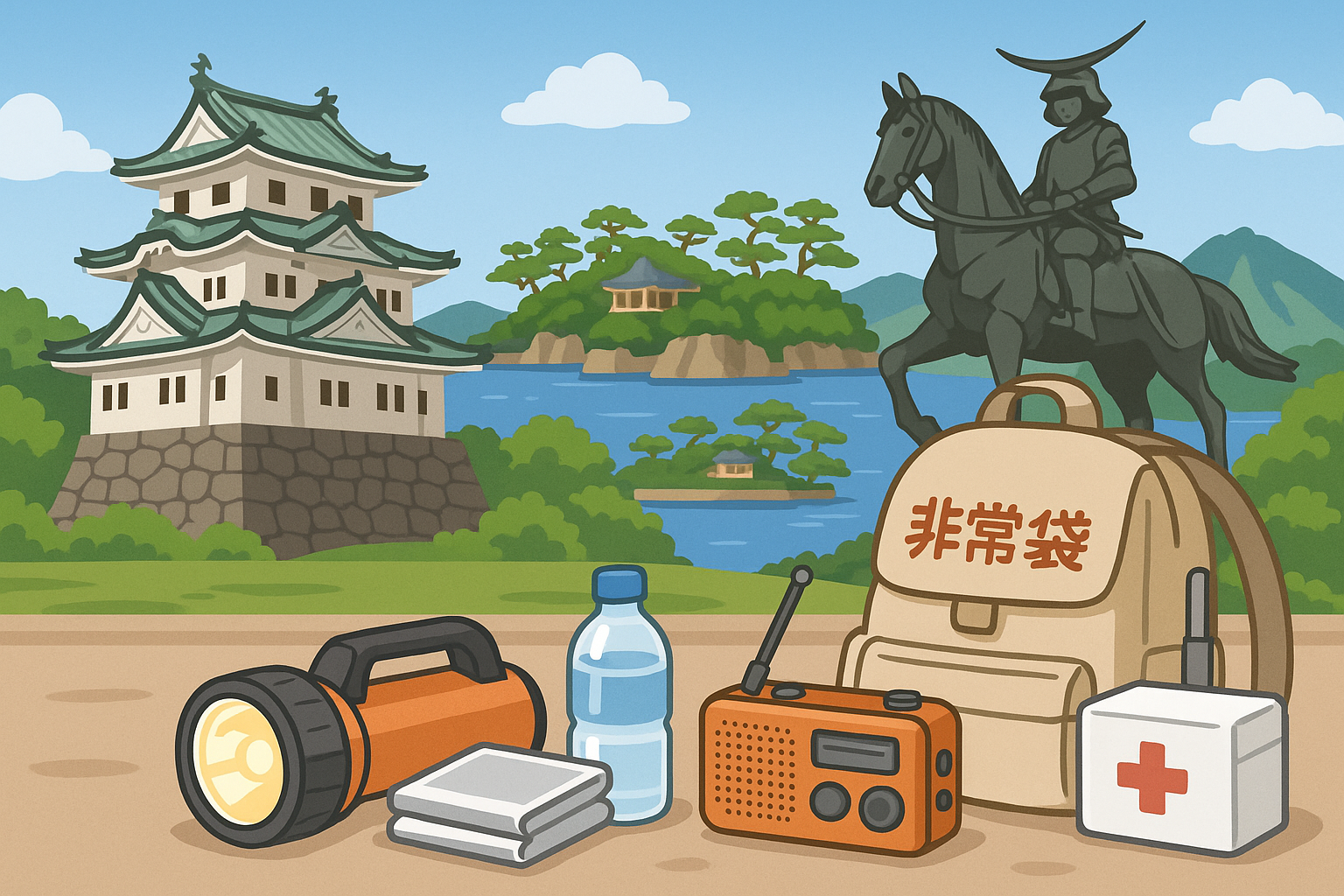 - 日常備蓄:水(1人1日3L×7日分)、非常食、ラジオ